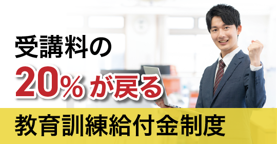 雇用保険加入1年以上の方は、最大10万円が返金される教育訓練給付金制度を利用しておトクに学習ができます。