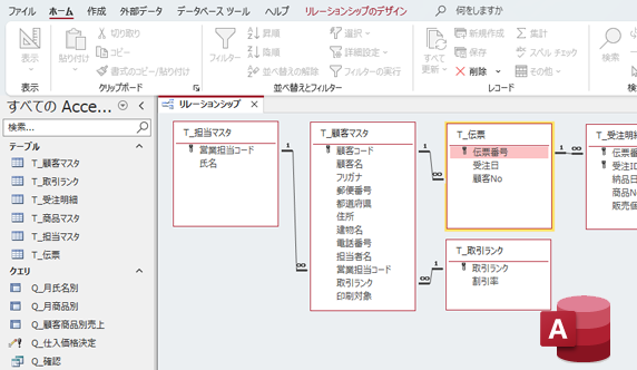 テーブルやクエリ、フォーム、レポートといった基本操作から、リレーションシップ設定や条件抽出、