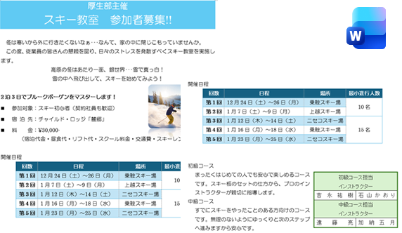 効率的な操作方法や文字・段落の書式設定、表や画像の挿入などを通じて、見やすく整った文書を作成するスキルを習得します。