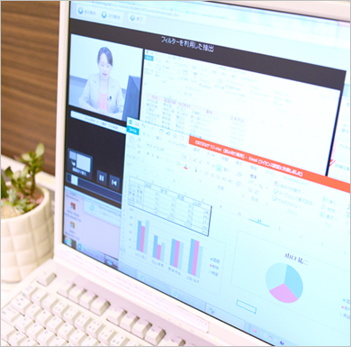 受講者の操作画面は講師側からもモニタリングし、不明点、操作に困った点などはその場で的確にサポート致します。